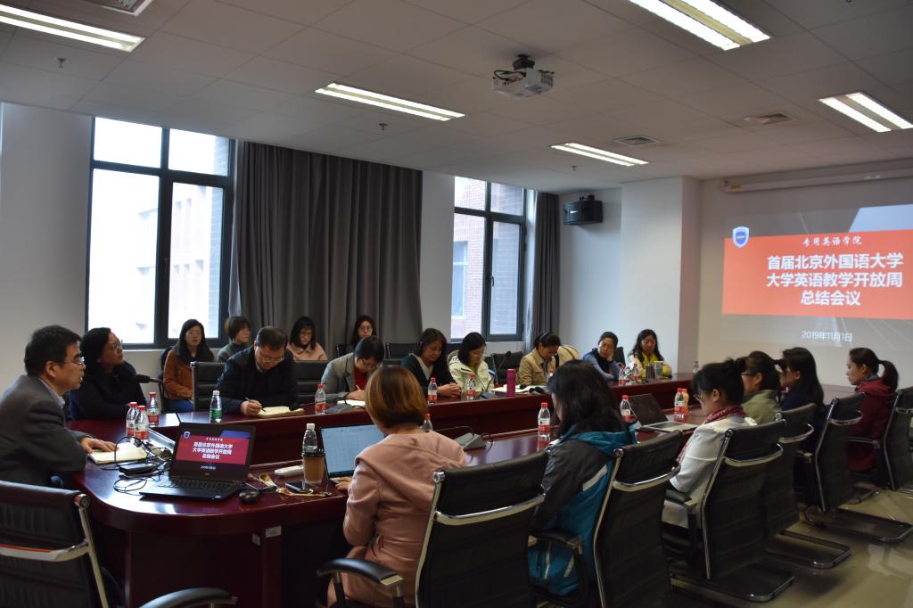 11月1日下午,BB贝博艾弗森在西校区国际大厦1016会议室召开“首届北京外国语大学大学英语教学开放课堂暨研讨会”总结会。教务处处长李莉文、外研社高等英语教育出版分社社长助理冯涛、BB贝博艾弗森常务副院长蔡鸿、副院长仵胜奇及学院参加开放课堂的教师代表共计23人参加了会议。会议由蔡鸿主持。