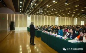 随后一天半的时间里,日本“大学英语教师协会”会长、高千穂大学的Hajima Terauchi教授和澳大利亚悉尼大学Brian Paltridge教授分别作了题为“The Past, Present and Future Prospects of EBP in Japan”和“Looking Inside the World of Peer Review”的主旨发言。Hajima Terauchi教授报告了对日本商务人士进行的两次大规模调查的结果和对教学的启示,调查发现商务人士认为在职场最难的文体是电话谈话和商务会议,Terauchi教授提出了一些有针对性的建议来解决日本商务英语教学中存在的问题。Brian Paltridge教授针对初学论文写作的学生在面临同行评审时的困难,提出学生应充分理解编辑部给出的意见,认真分析同行评价,找到英语写作中存在的问题,并提出英语教师应引导学生对比自己的手稿进行分析,认真对待审稿意见,从而更加积极进行创作,提高英语写作和发表能力。