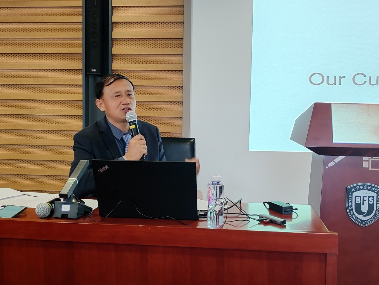 李参赞的讲座内容丰富,幽默风趣,既有思想深刻、鞭辟入里的理论阐述,也有生动形象、特色鲜明的外交案例;既体现了中国传统文化守正创新的时代价值,也展现中国文化海外传播、中外文明交流互鉴的精彩乐章,是一堂深入浅出、生动活泼、思想性强、实践性强的思政教育课。习近平总书记在给北外老教授回信中强调,“深化中外交流,增进各国人民友谊,推动构建人类命运共同体,讲好中国故事,需要大批外语人才,外语院校大有可为。”作为北外人,我们深感责任重大,使命光荣。我们一定牢记“兼容并蓄 博学笃行”的校训,踔厉奋发,笃行不怠,为讲好中国故事、传播好中国声音,展现可信、可爱、可敬的中国形象不懈努力。
