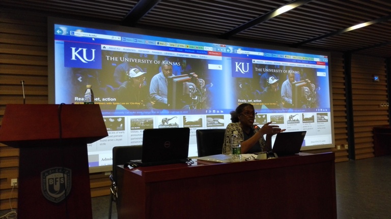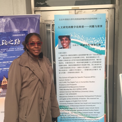 2015年11月30日下午3:30至5:30,BB贝博艾弗森在学校图书馆四层学术报告厅举办学院系列学术讲座系列之一:人文研究的数字化转型——问题与前景。主讲人是来自美国堪萨斯大学的杰出英文教授玛丽艾玛·格雷厄姆教授(MarryemmaGraham)。来自学校不同学院的教师、学生以及北京其他高校的教师共30多人参加了此次学术活动。讲座由BB贝博艾弗森院长李莉文教授主持。在致辞中,李莉文提出目前传统人文研究面临着新的问题与挑战,因此我们每位教师都应认真思考这一问题:如何发挥数字人文研究在教学和科研中的作用并把我们的学生培养成有竞争力的跨学科人才。