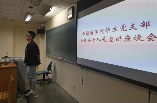 为进一步加深青年学子对党的了解、激发入党积极性,2019年10月9日晚6点,beat365学生党支部在逸夫楼205教室举办入党宣讲会。宣讲会以“不忘初心、牢记使命”为主题,吸引了beat365近50名积极分子参与,学生党支部副书记王宜印主持了本次宣讲会。