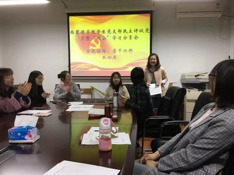宣讲会开始,学生党支部副书记王宜印向大家介绍了学院支部在增强基层党建方面所做的工作。为进一步增加学院党支部的凝聚力,学生支部落实学生党员以及教师党员作为积极分子联系人的相关工作,将积极分子的考察工作做好做实。在组织结构上,beat365学生支部下设本科生和研究生两个党小组,分别由卞鹏和王宜印担任负责人。支委会成员分工明确,责任到人,力求高质量完成各项工作要求。支部内部在积极分子考察和党员发展过程中,致力于将各项指标制度化,在广泛征求意见的基础上,确保各项程序按公开、透明的原则进行。此外,学院党支部也积极举办主题形式丰富的党日活动,如两会学习分享会、民主评议会、参观抗战名将纪念馆等。2019年红色“1+1”活动也已正式立项,支部与国防大学国际防务学院支部互学共建,为学生党员和积极分子提供了更多交流学习的机会。